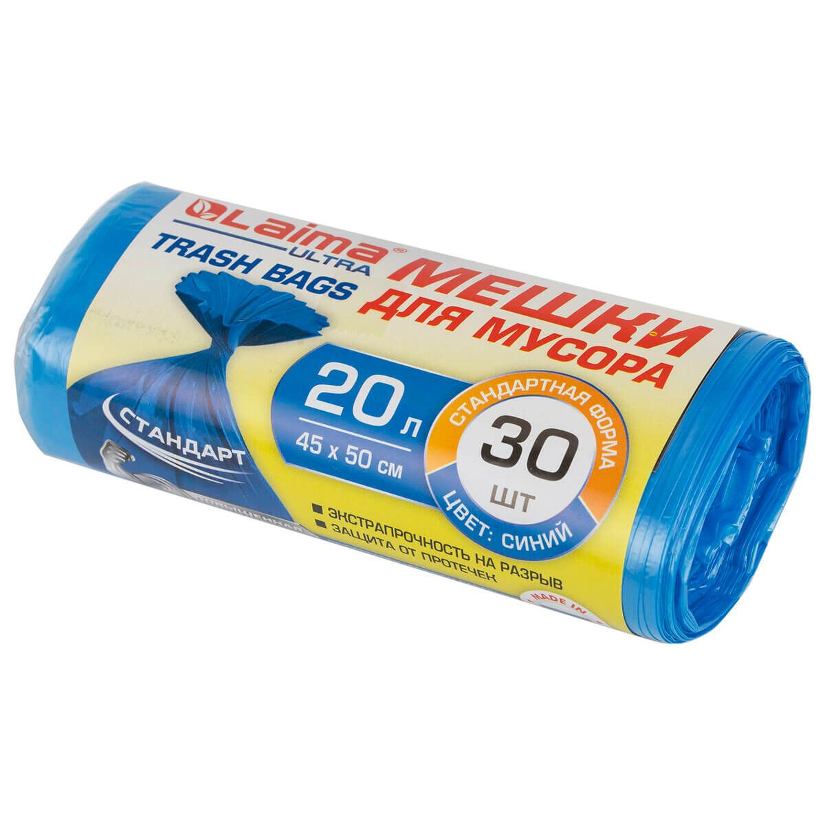 Мешки для мусора 20 л, синие, в рулоне 30 шт., ПНД, 8 мкм, 500х450 мм, LAIMA, 607682 в Тамбове