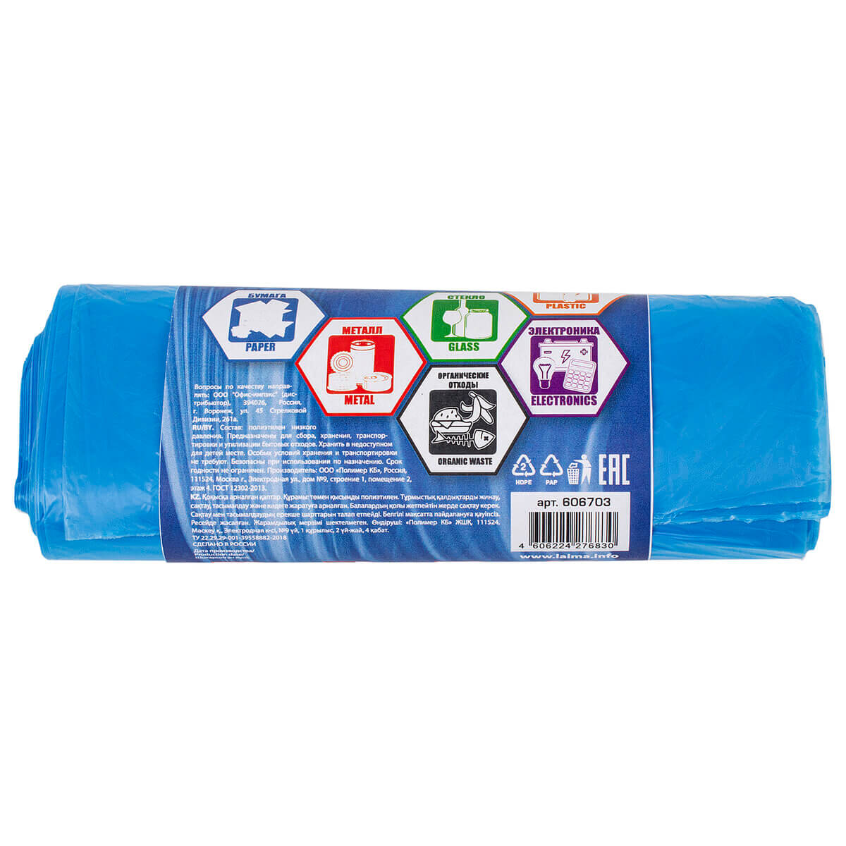 Мешки для мусора 60 л, синие, в рулоне 20 шт., ПНД, 10 мкм, 680х580 мм, LAIMA, 606703