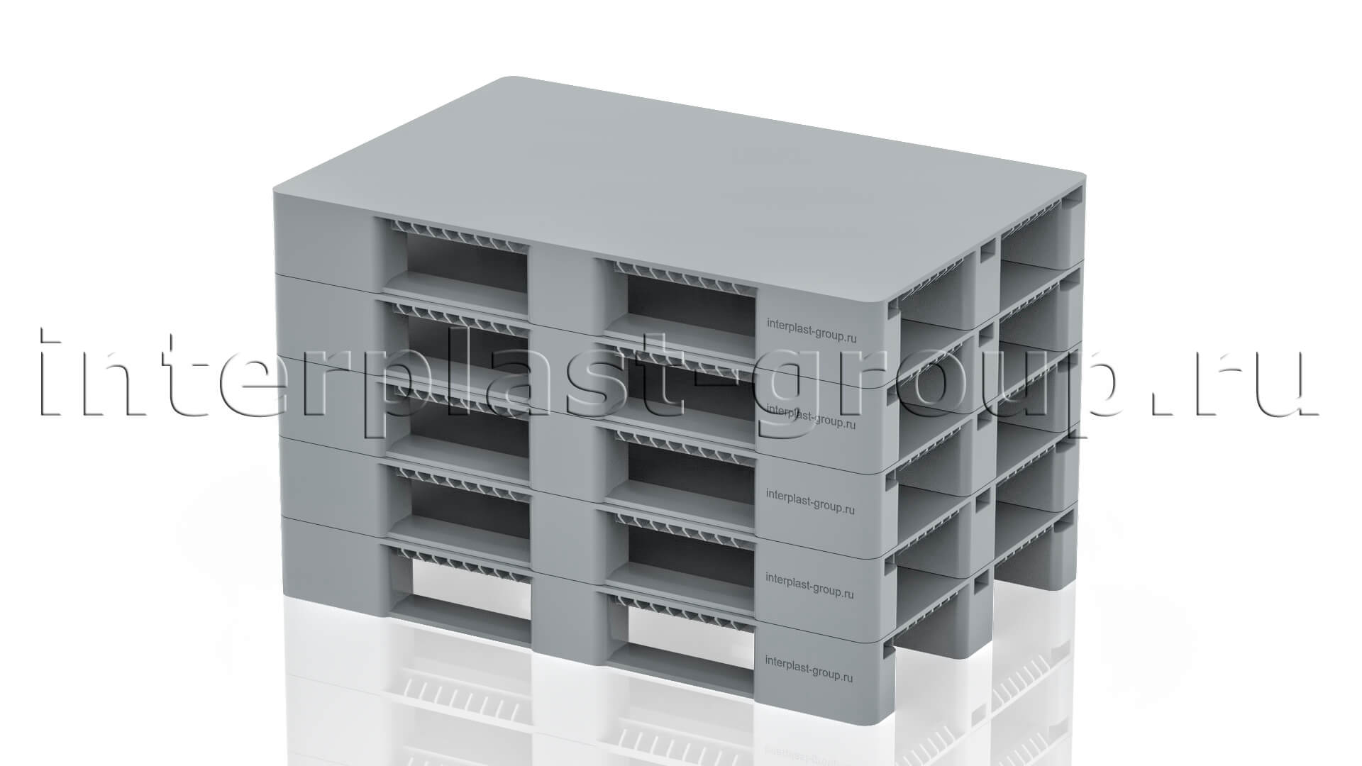Многофункциональный поддон, производимый по технологии литья под высоким давлением с включением вспенивающего реагента. Разработан для хранения и перевозки тяжелых грузов.
