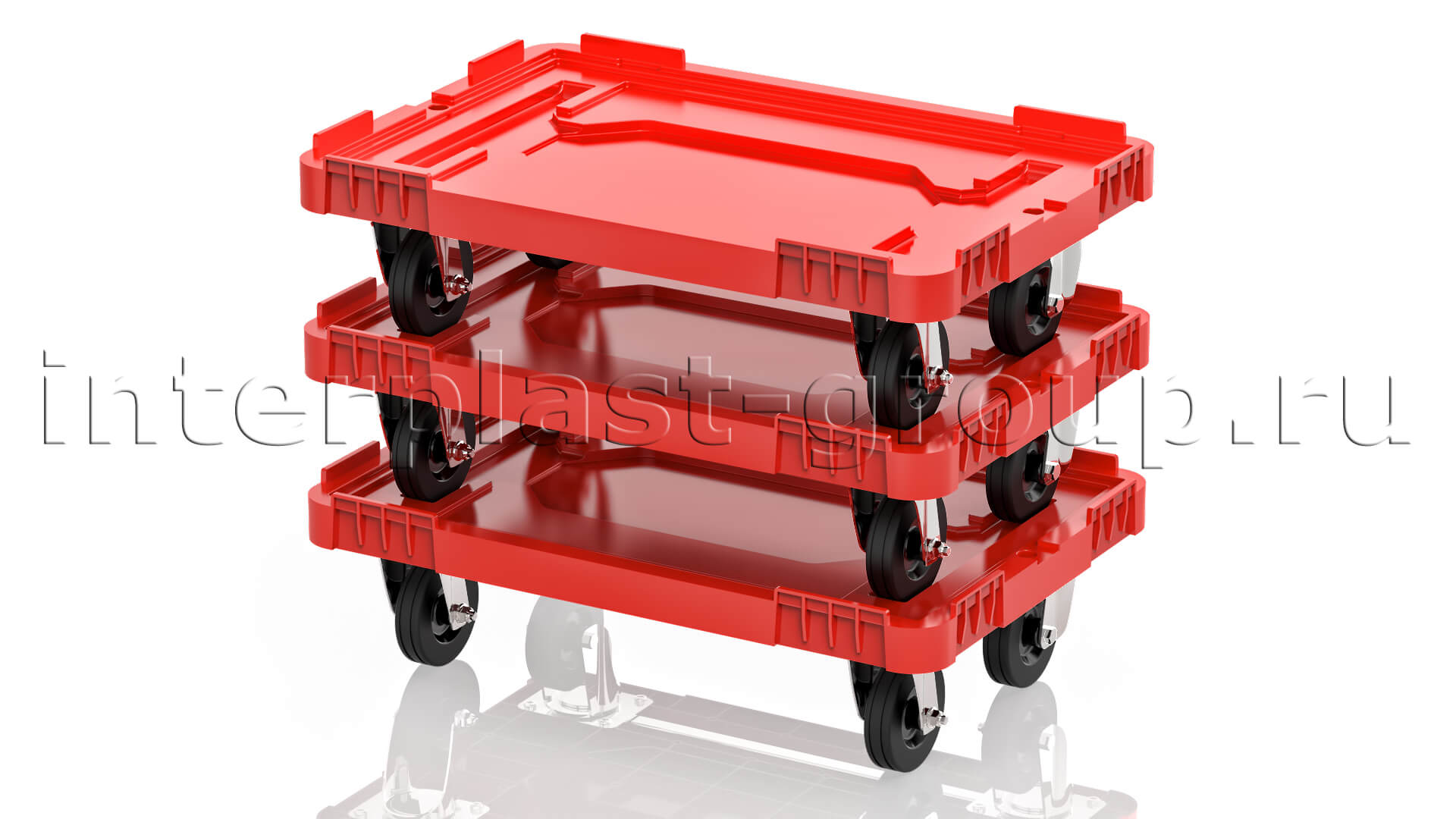 Тележка пластиковая сплошная без тормозов усиленная красная в Тамбове