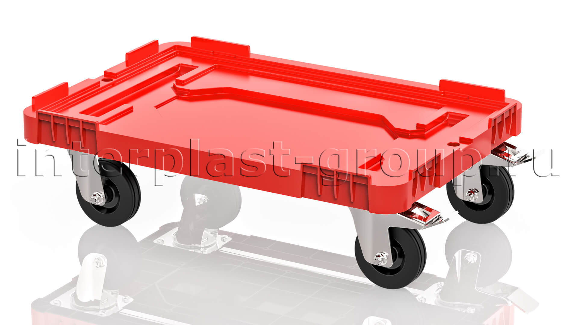Тележка пластиковая сплошная 2 колеса с тормозом усиленная красная в Тамбове