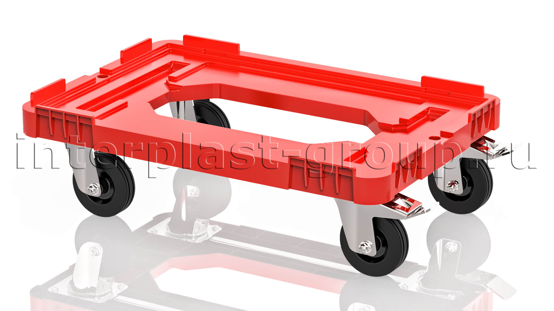 Тележка пластиковая с отверстием 2 колеса с тормозом усиленная красная в Тамбове