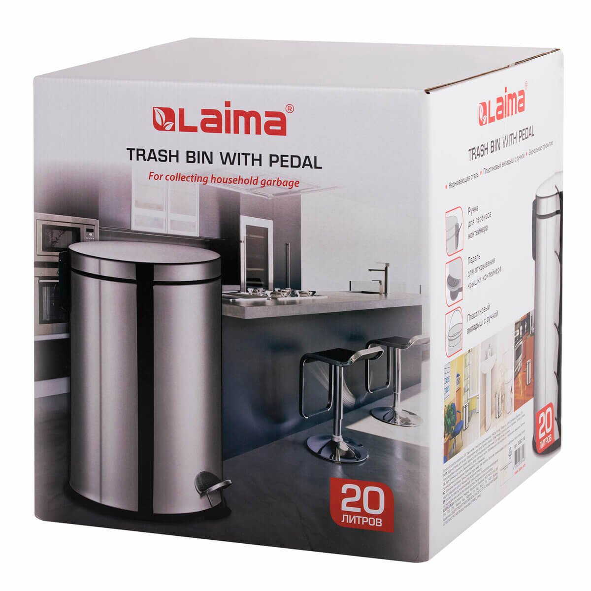 Ведро-контейнер для мусора урна с педалью LAIMA Classic Plus, 20 л, зеркальное в Тамбове